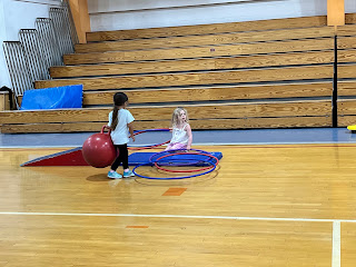 Today we explored the gym! We talked to Ms. Blaine and got comfortable in the environment! We explored with balls, scooters, hula hoops and more! We ran around and stretched our muscles! We were able to get some extra wiggles out as well as have lots of gross motor activity!