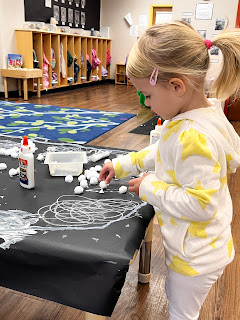 Today was all about the color white! We made a class white collage, played with white toys, played with white playdough, cut up white Styrofoam, and played with white cars. We also did show and tell!