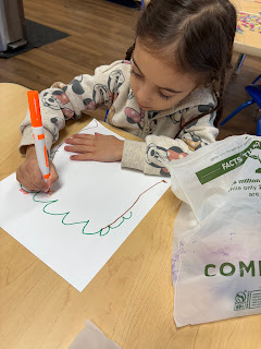 Today we talked about why trees are important and what grows on trees. We talked about how some fruits and vegetables grow underground, some grow on vines and then we identified which ones grow on a tree and wrote the down. We then drew types of trees and wrote the words of the trees we drew.